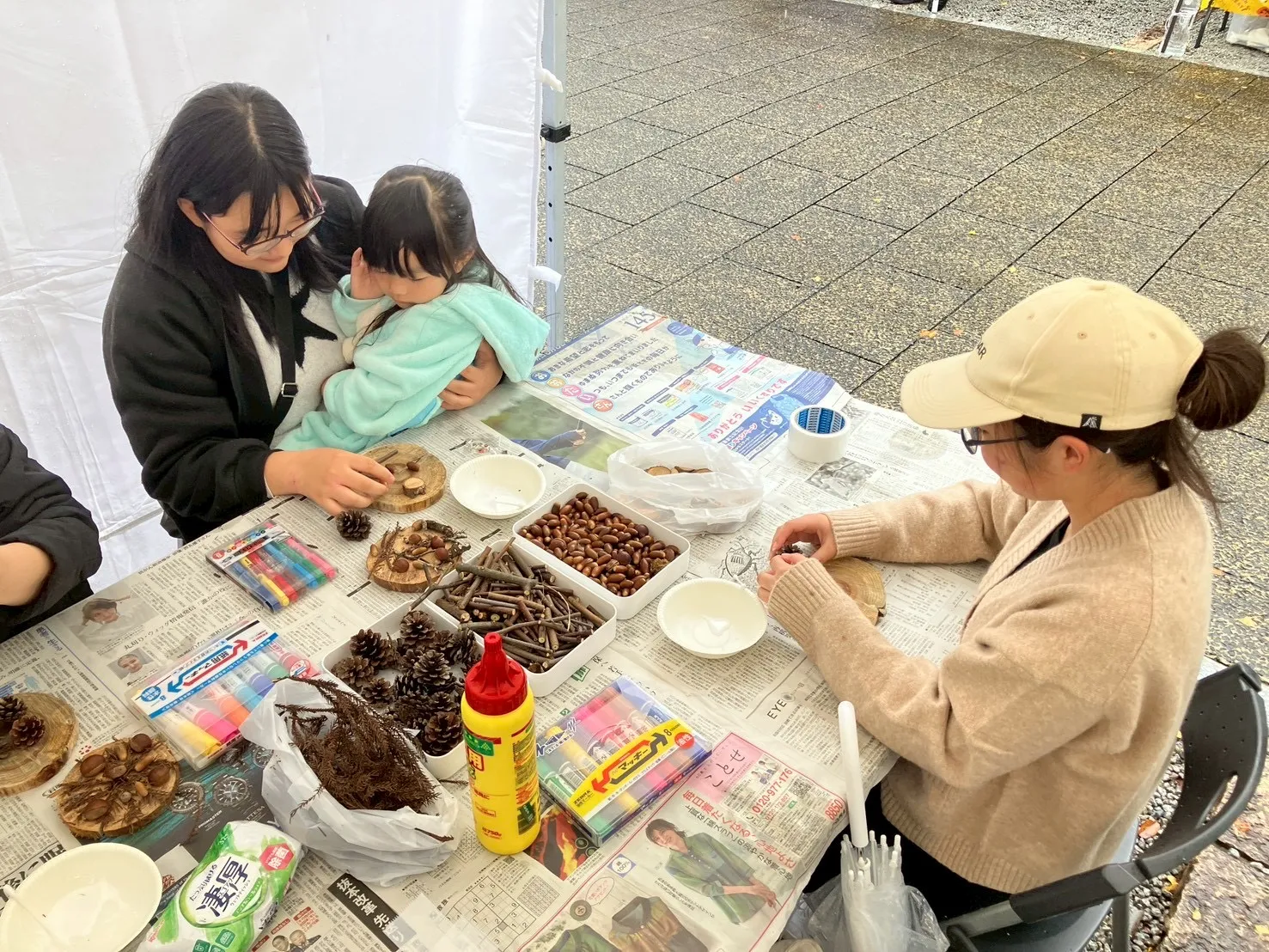雨天での開催となりましたが、村内で回収した木の枝や葉、どんぐりなどを使った自然工作は大人気!